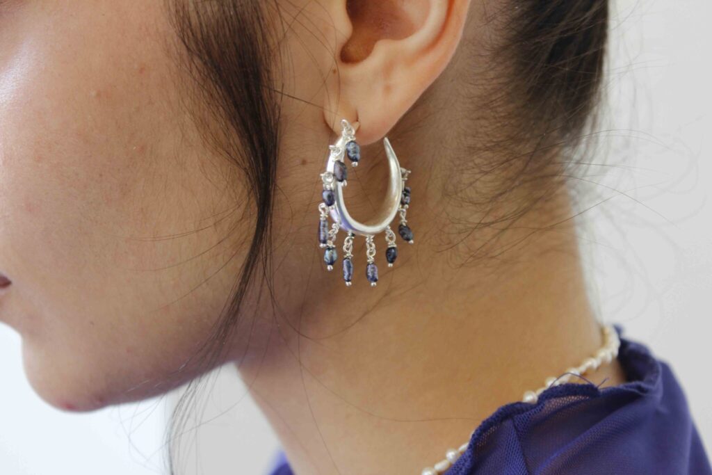 £165.00Make a bold statement with the Midnight Cascade Hoop Earrings, featuring our best sellers hoop design with dangling deep-blue pearls that catch the light…