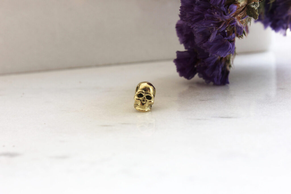 Gold Skull Stud Earring This dark yet beautiful earring looks unique and special. The earring is made from yellow gold, 9ct, 14ct or…