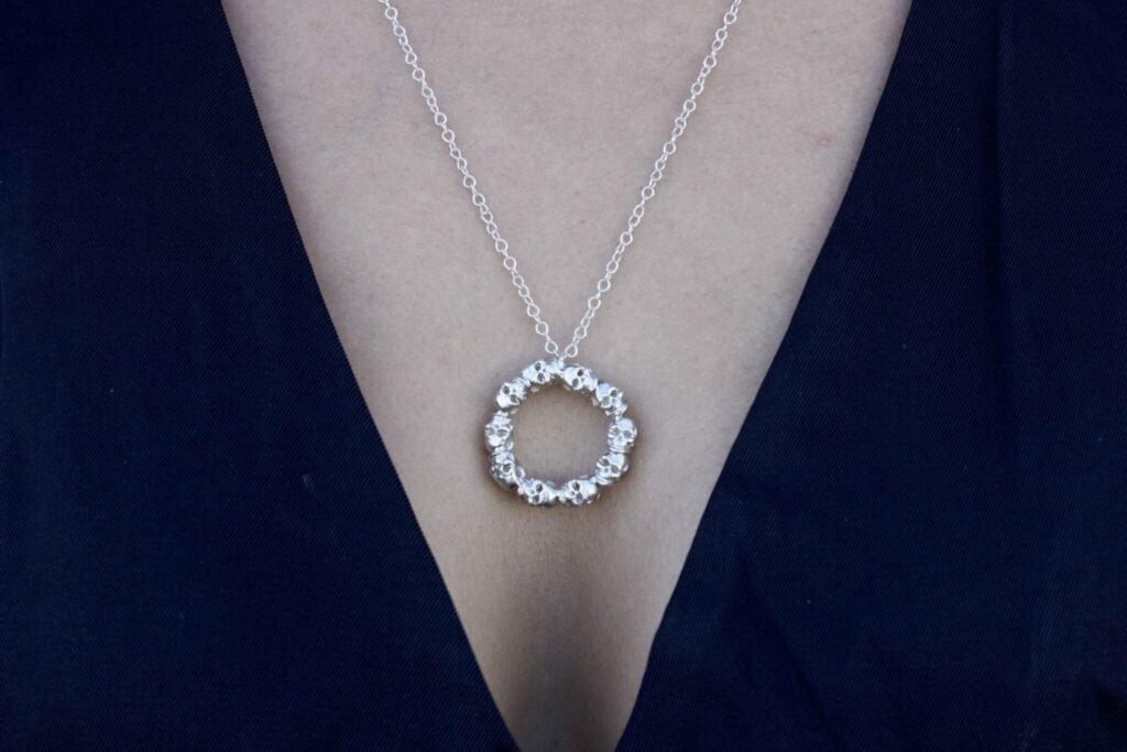 The necklace features ten small sterling silver skulls attached one by one. This dark yet beautiful necklace can be worn to complete an…