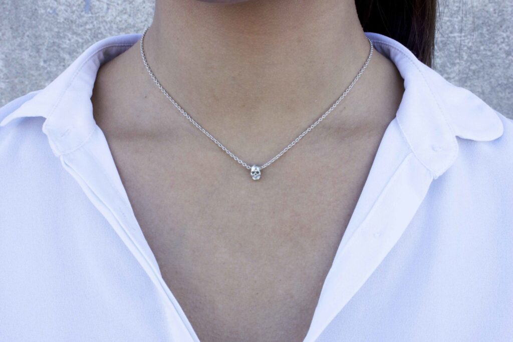 A tiny little skull hangs from delicate yet sturdy chain. Both the skull and the chain are made of sterling silver. • Skull…