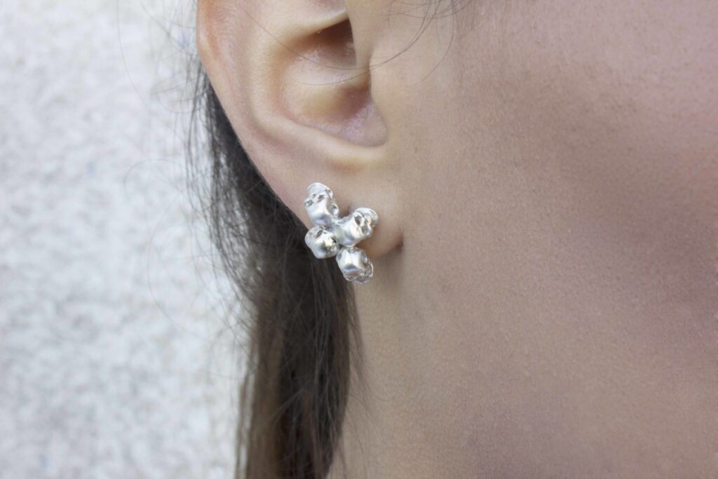The earrings are made of four small silver skulls soldered together, finished off with a post and a skull screw finding. Complete your…