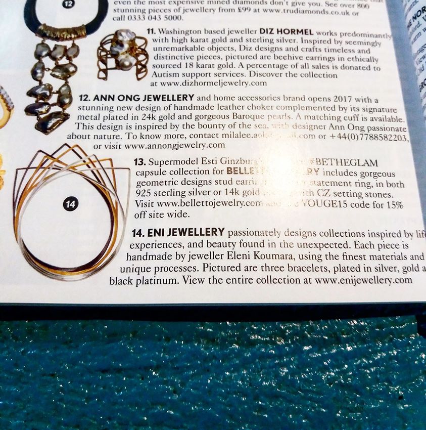 Urbs bracelets at the “Bling In The New Year” section of British Vogue January 2017 issue.