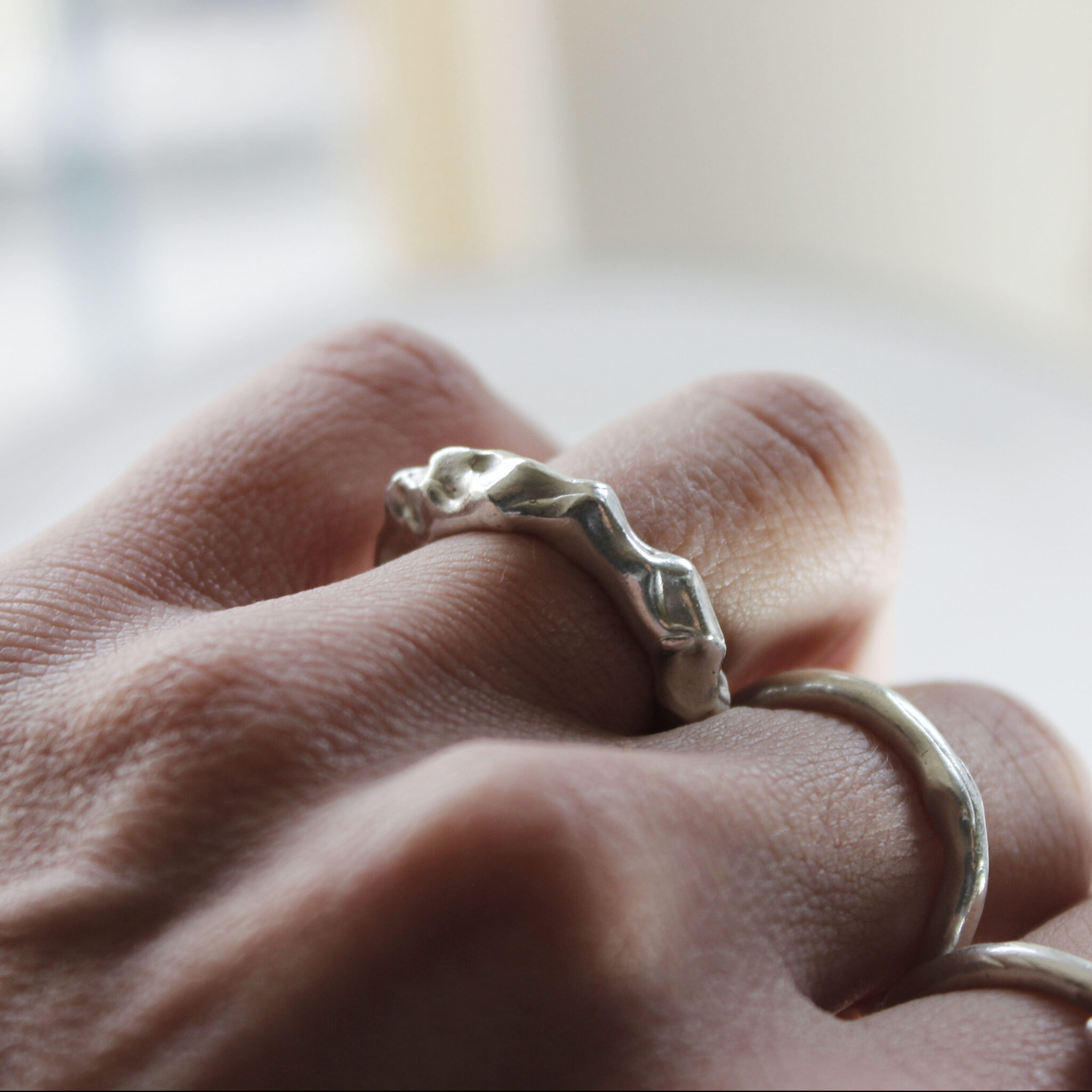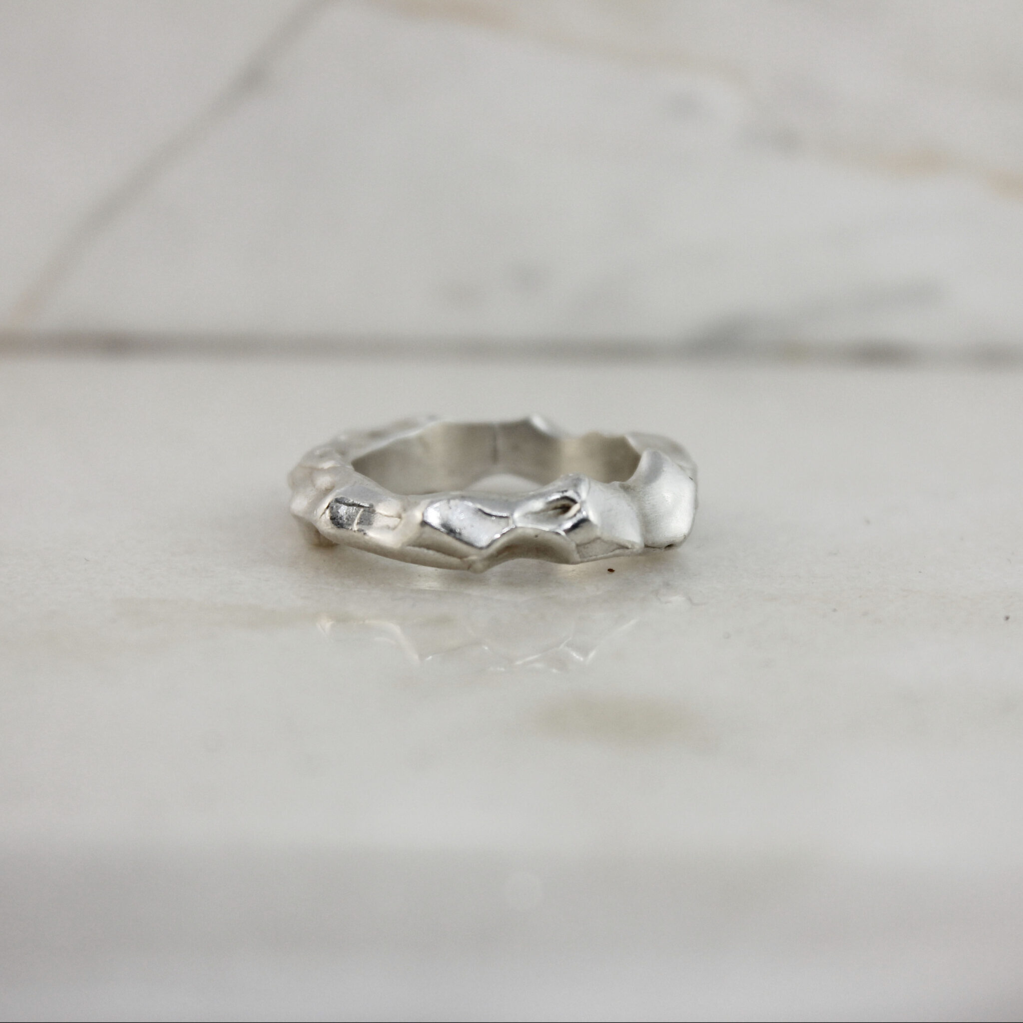The Amorphous Band formed from melted, recycled sterling silver to create gorgeous and one-of-a-kind organic ring band.