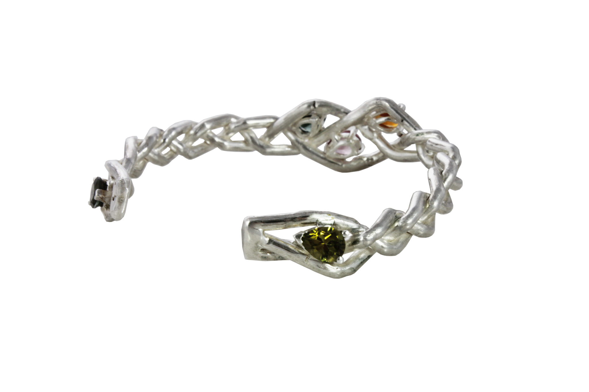 This Braided Bracelet features five unique tourmalines. Three of them in the centre, and one on each side.