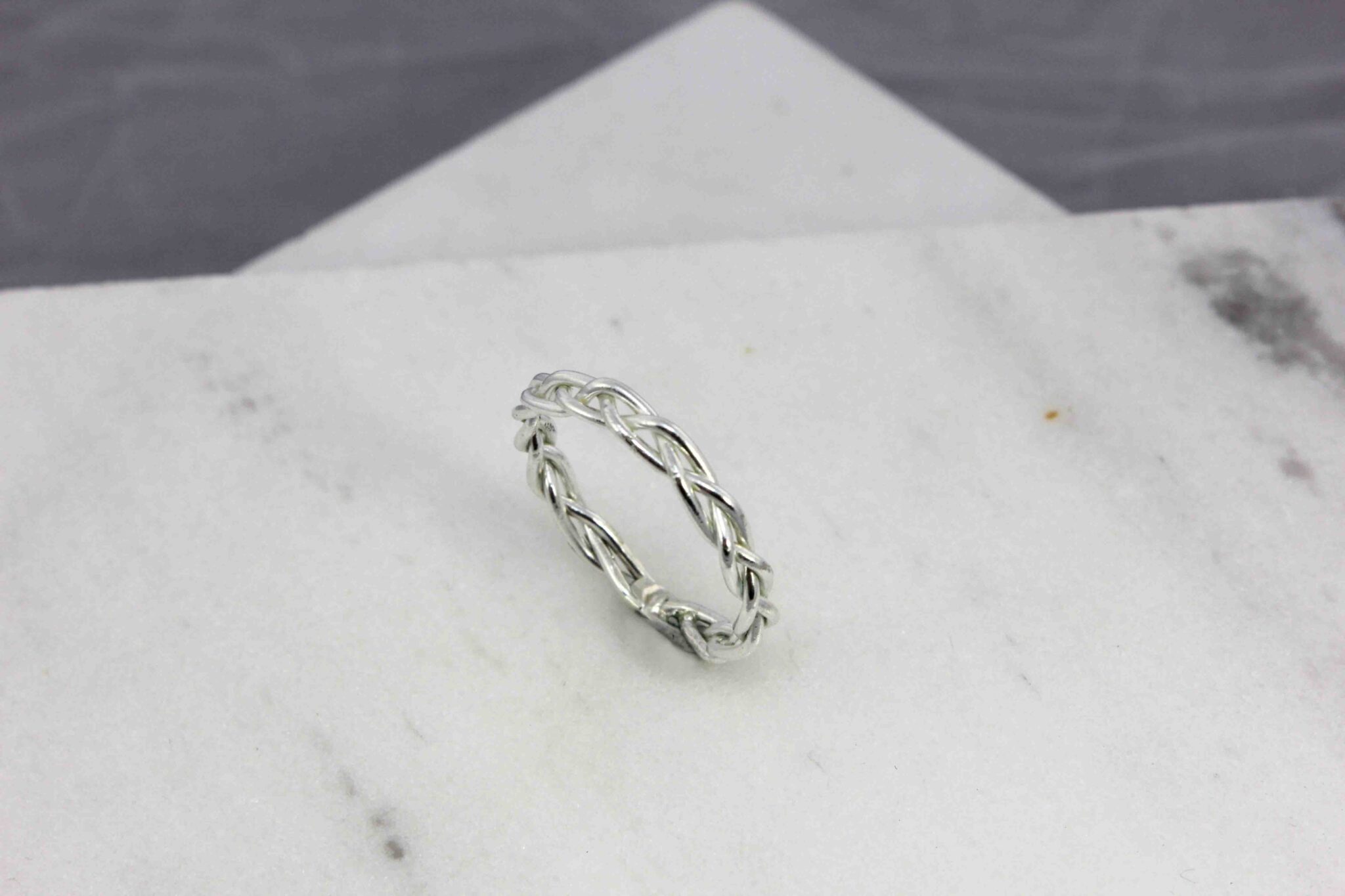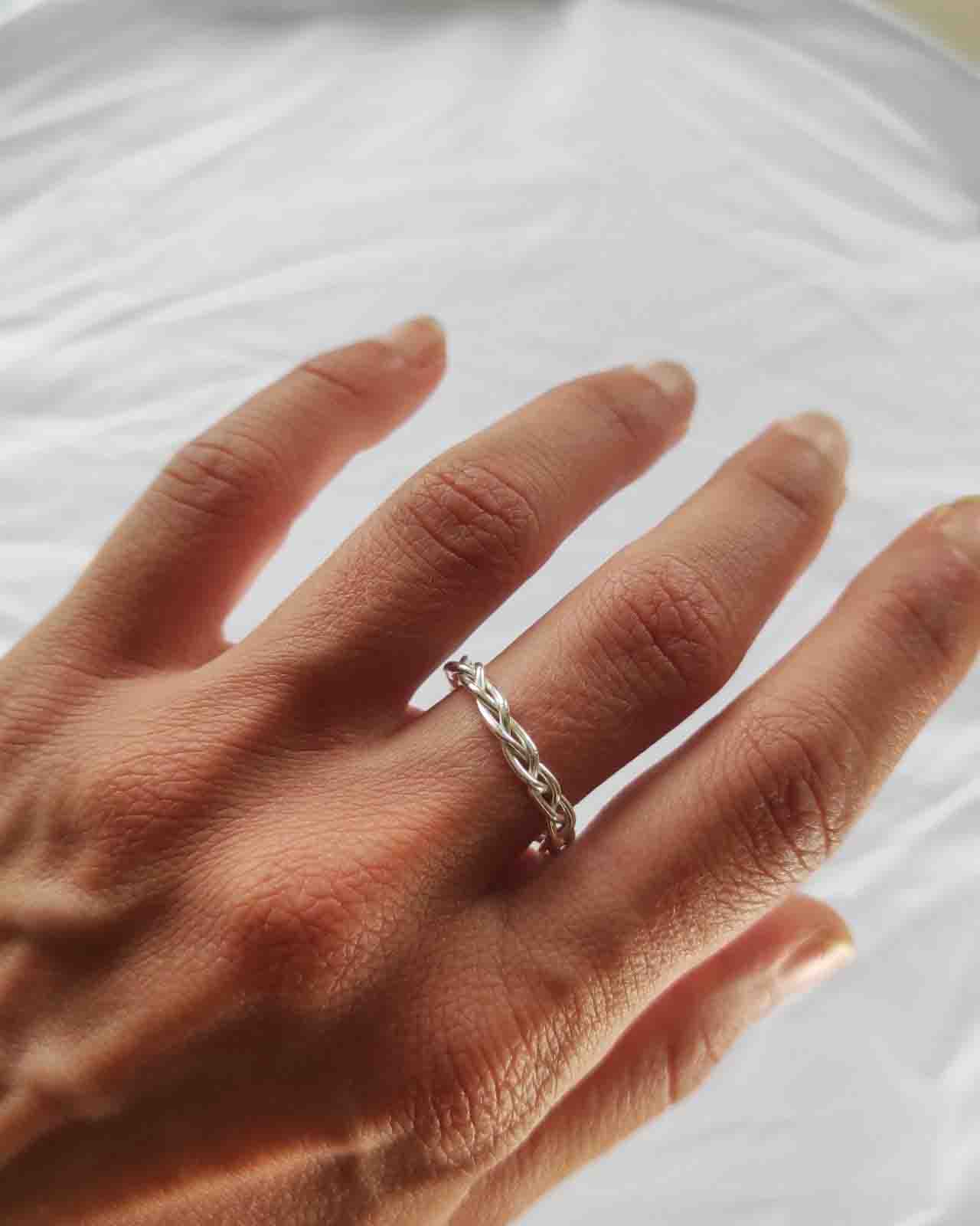 Braided Ring: A delicate, minimal ring, made from three silver wires braided together.
