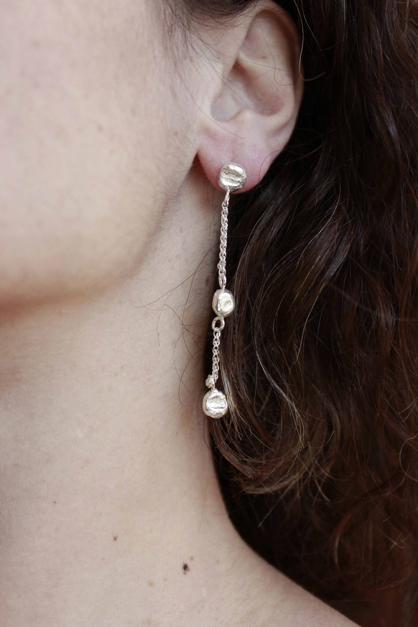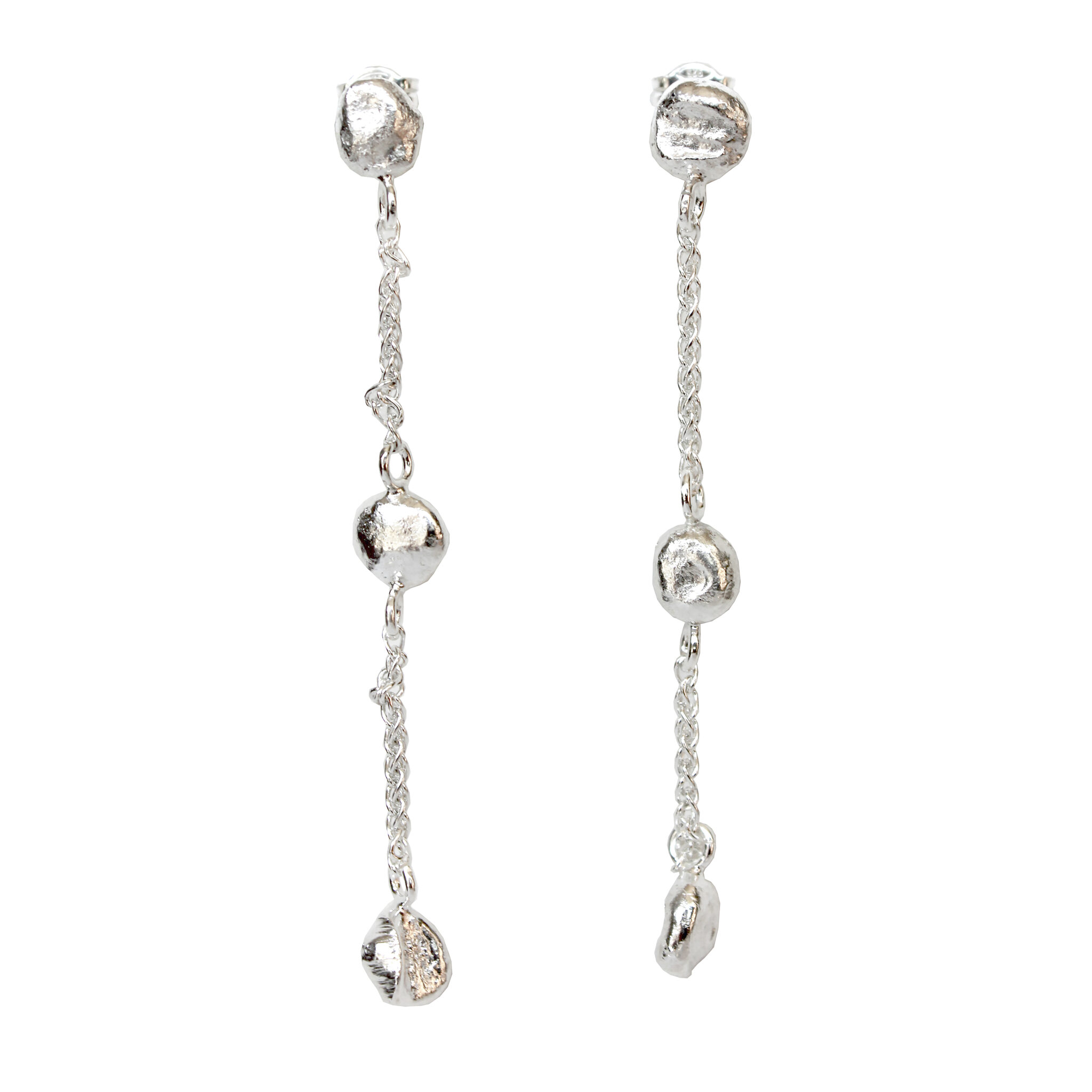 Simple and elegant, the Dione Earrings consist of three silver balls each, combined with silver chain.