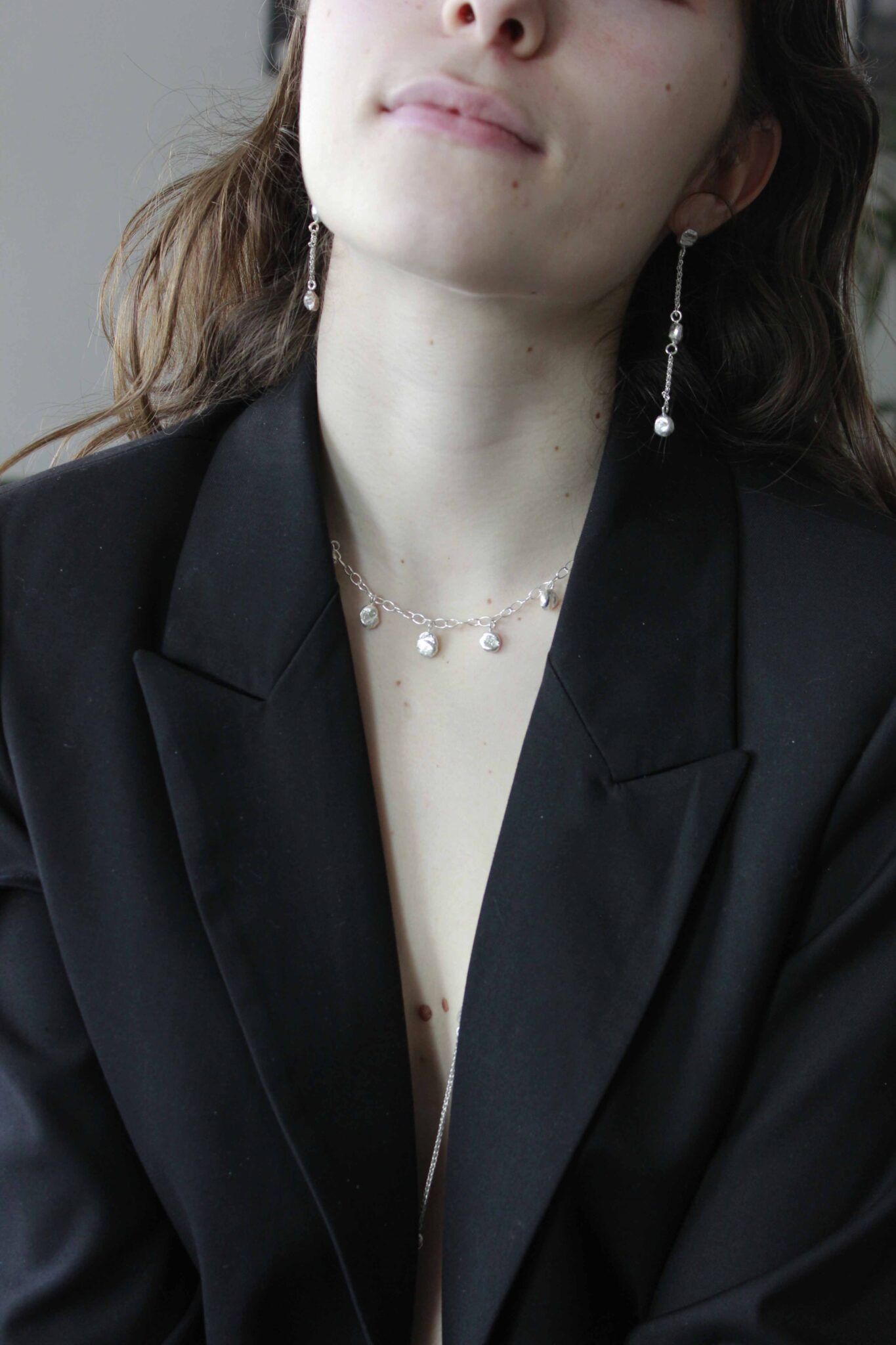 The small organic balls are made from our silver scrap, which means they are 100% recycled and solid.
