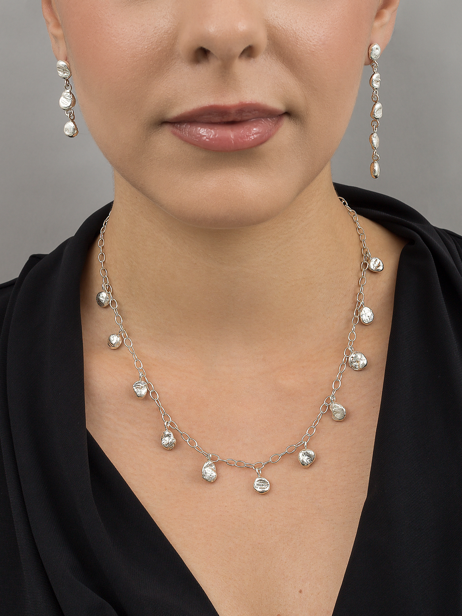 The small organic balls are made from our silver scrap, which means they are 100% recycled and solid.