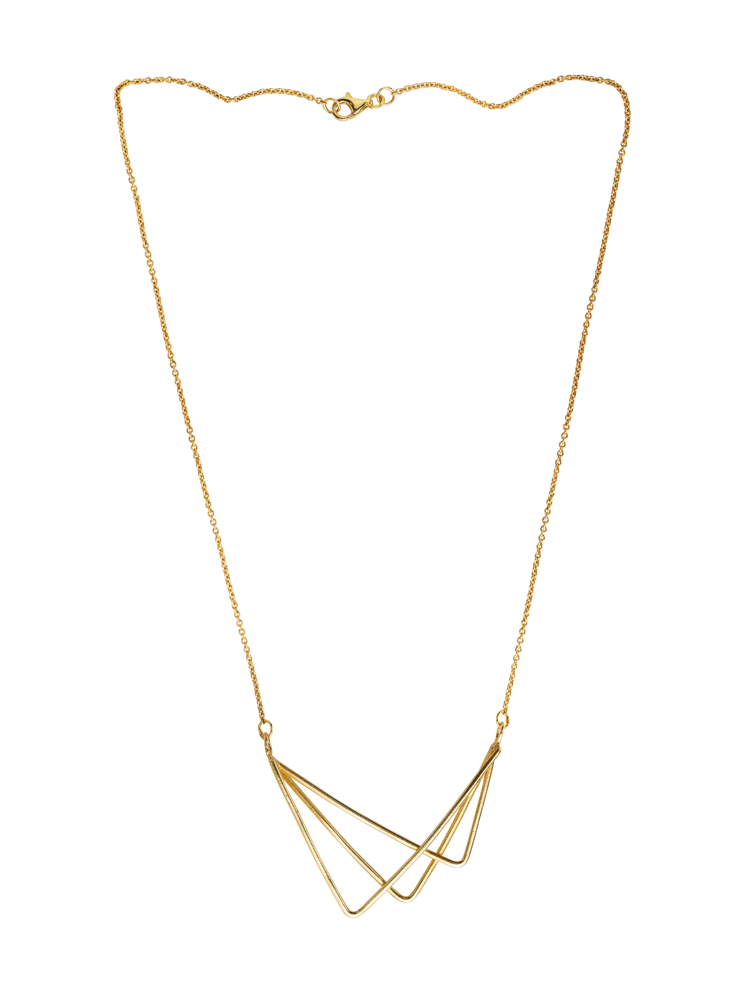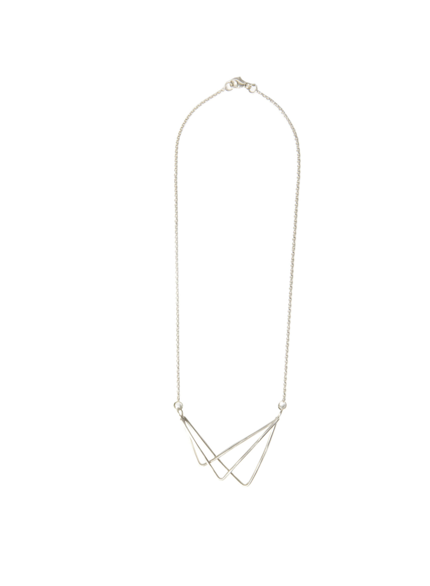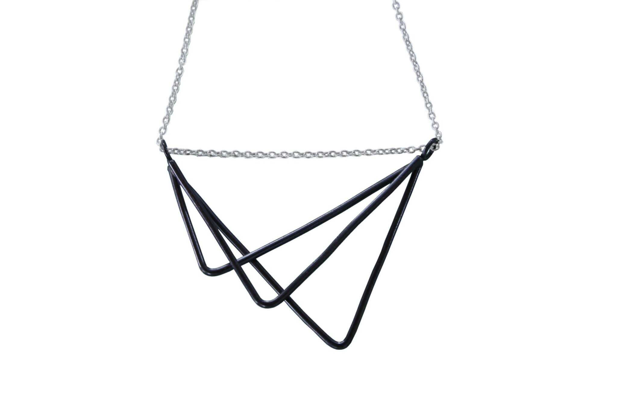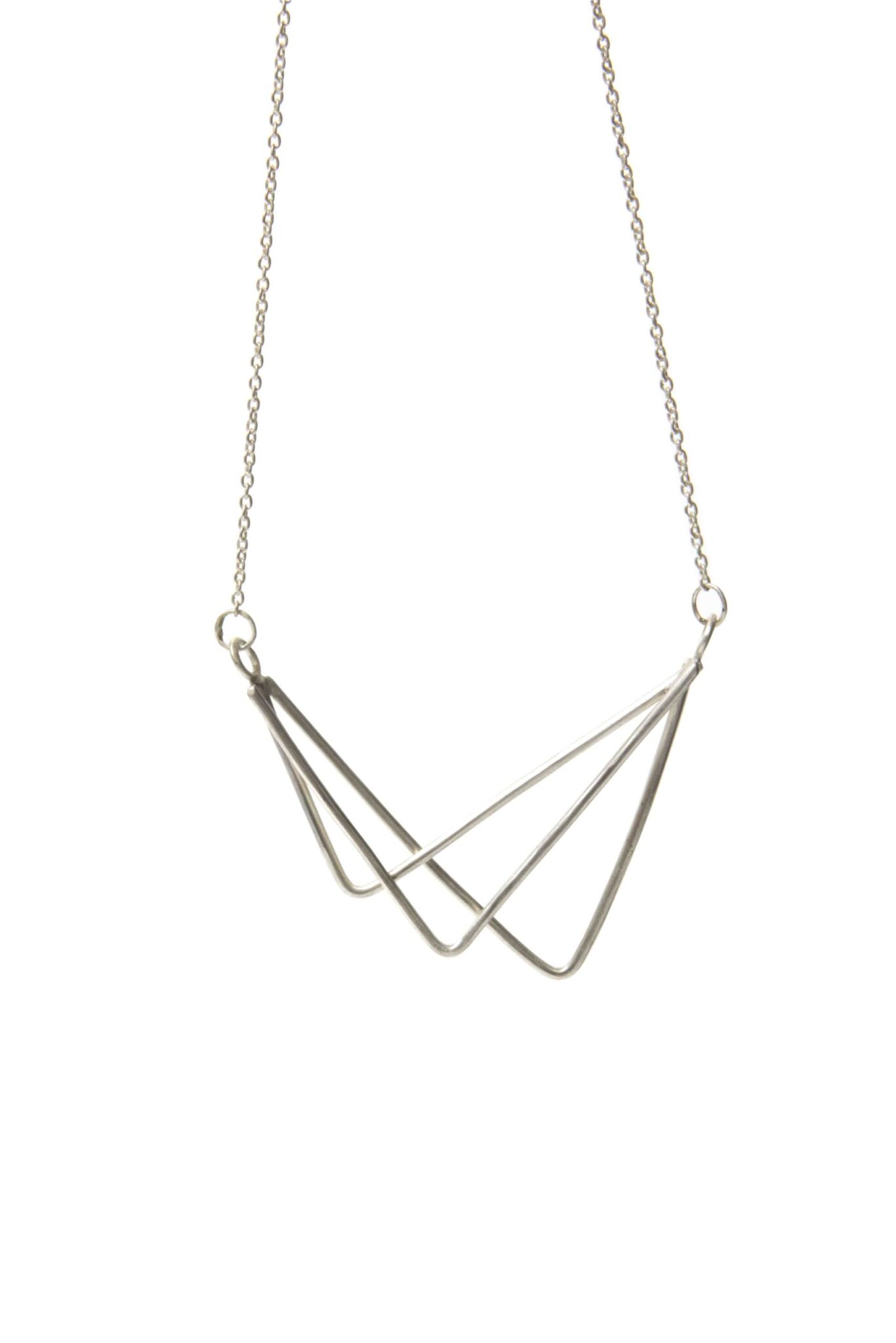 The three silver triangles are combined together in order to give form to a minimalist and unusual necklace.