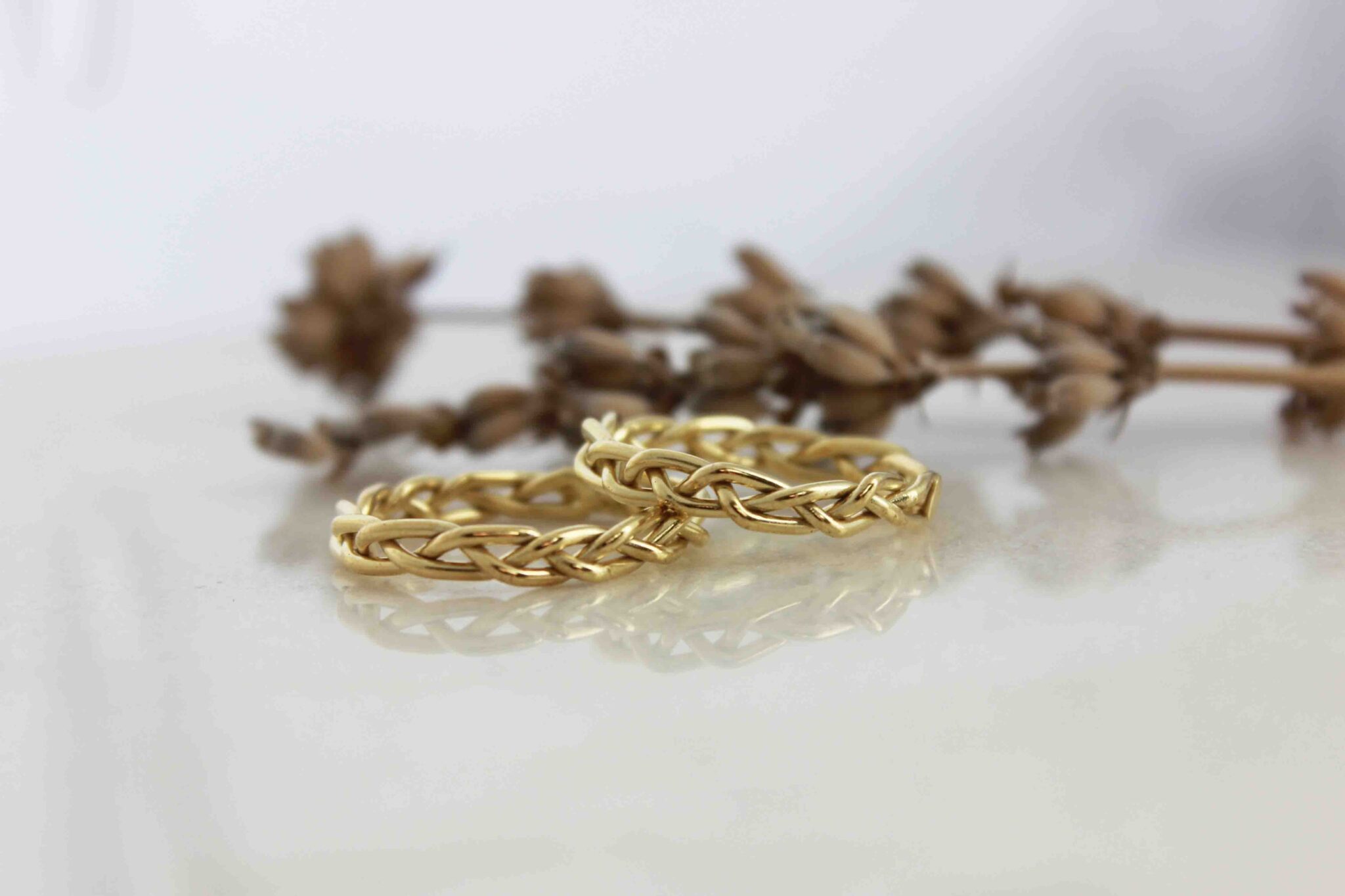 Braided Ring: A delicate, minimal ring, made from three 9K yellow gold wires braided together.