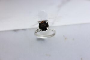 It is made from eco silver and smoky quartz stone of approximately 0.8cm diameter.