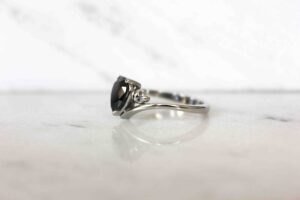 This minimal engagement ring features an amethyst stone, a blue topaz or a citrin in a black oxidised version.